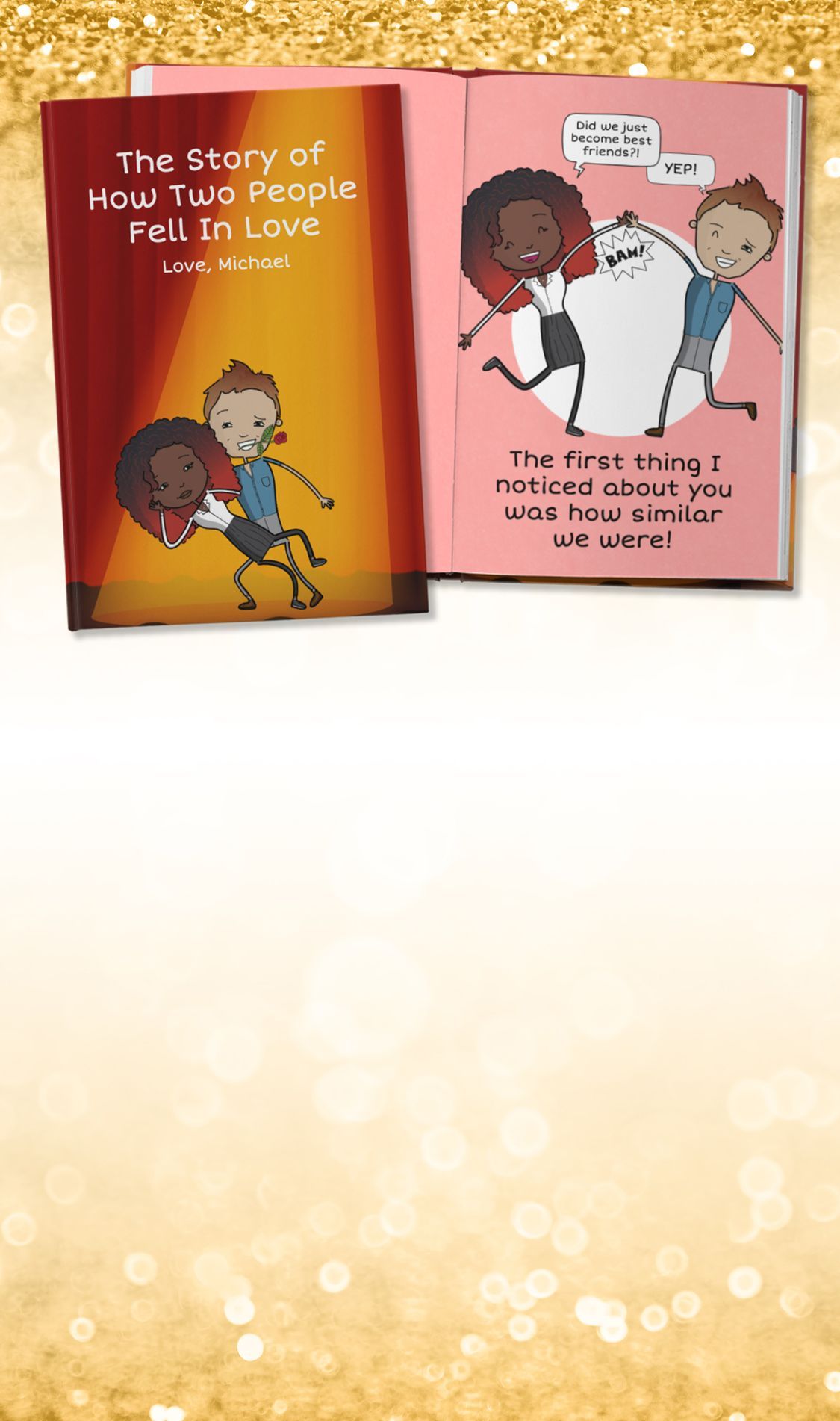 LoveBook will guide you through a few questions about your relationship to help build your story.