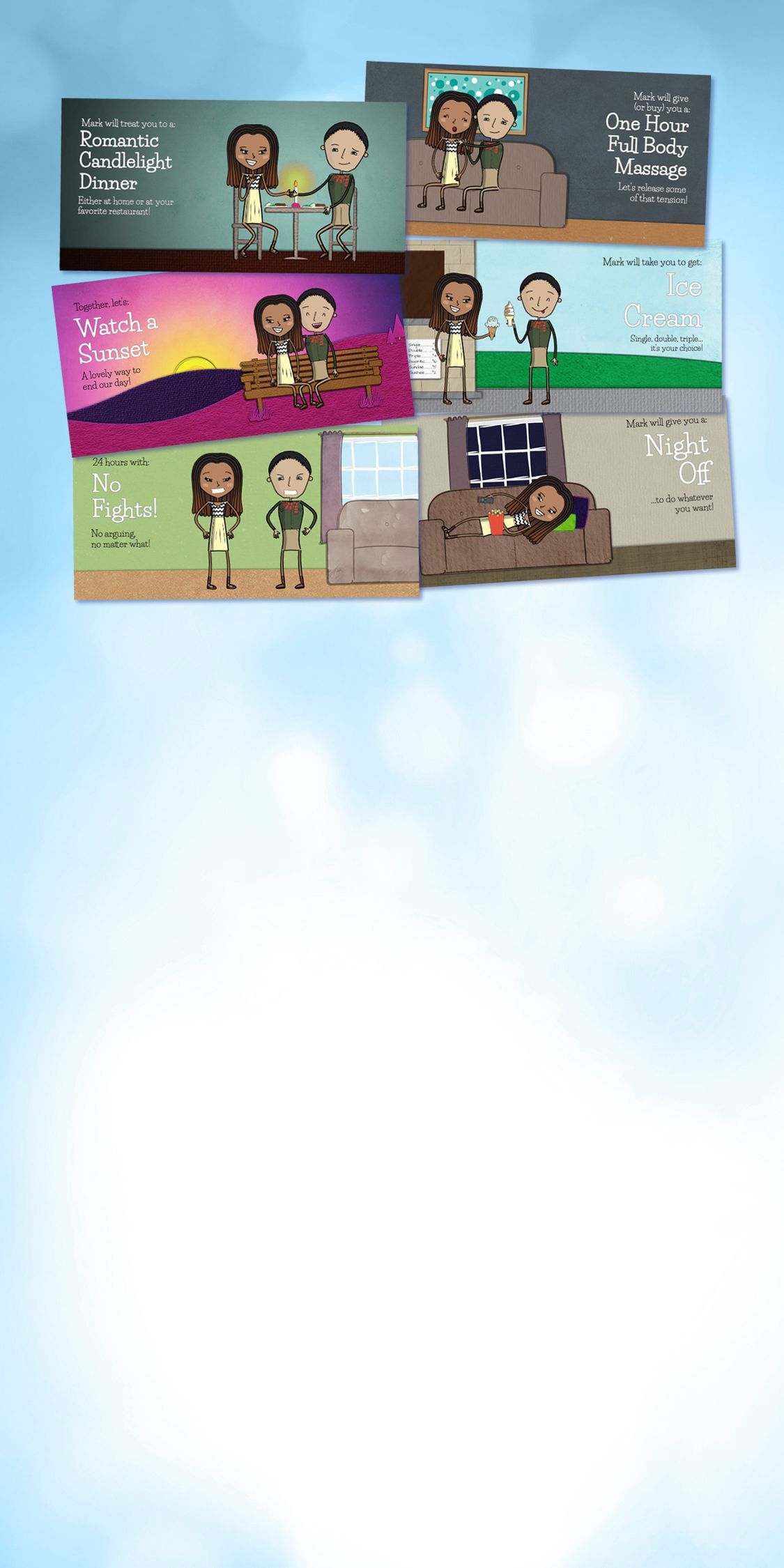 Each coupon is perforated for easy removal. Tear one out and redeem it with your loved one.