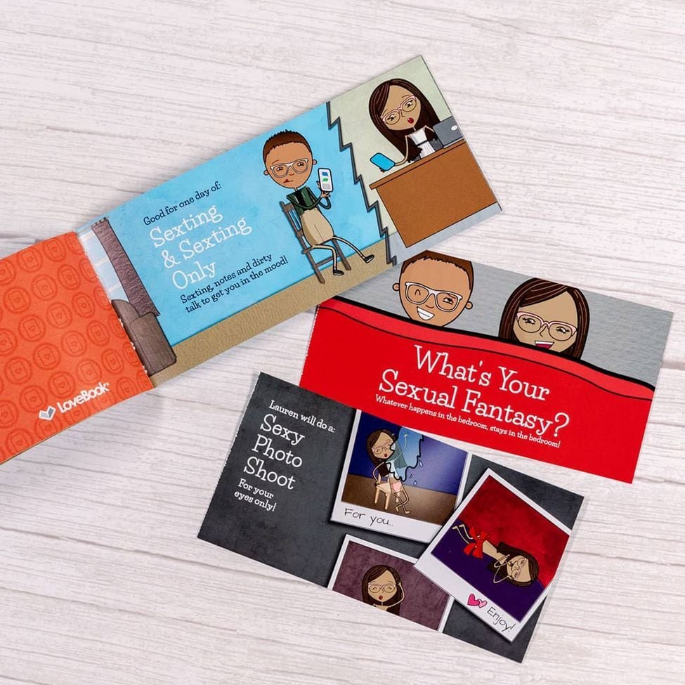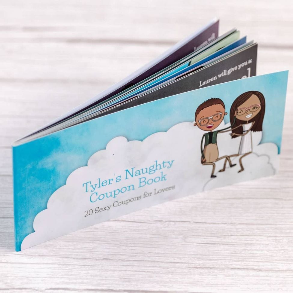 Our Naughty Coupon Book is a great way to increase the passion in your relationship. This coupon book is personalized starring your own Lovemoji characters that look just like you and the one you love. Each page contains a different sensual activity for you and your partner to enjoy. You'll want to use these coupons over and over again. Ages 18+ Only!