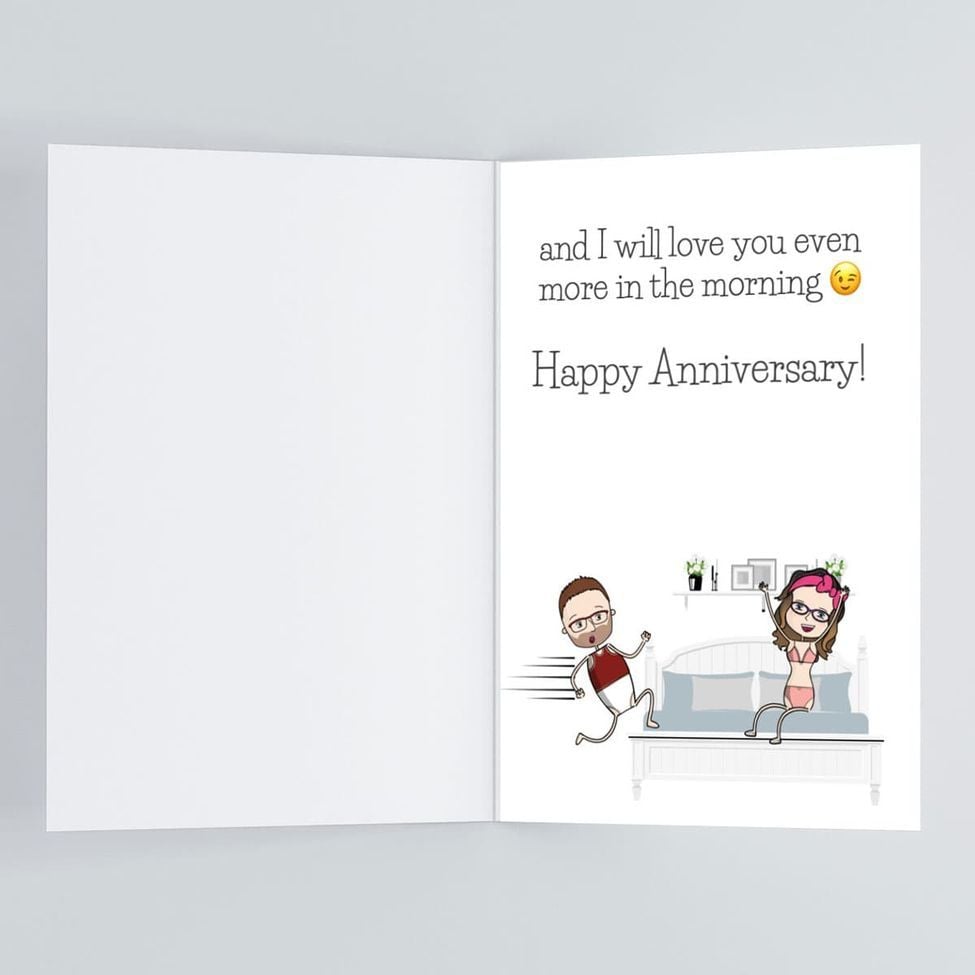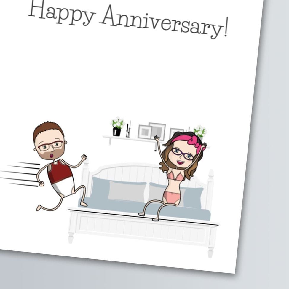 Make this anniversary a sexy one with this personalized anniversary greeting card. This card features a Lovemoji of you and your significant other.