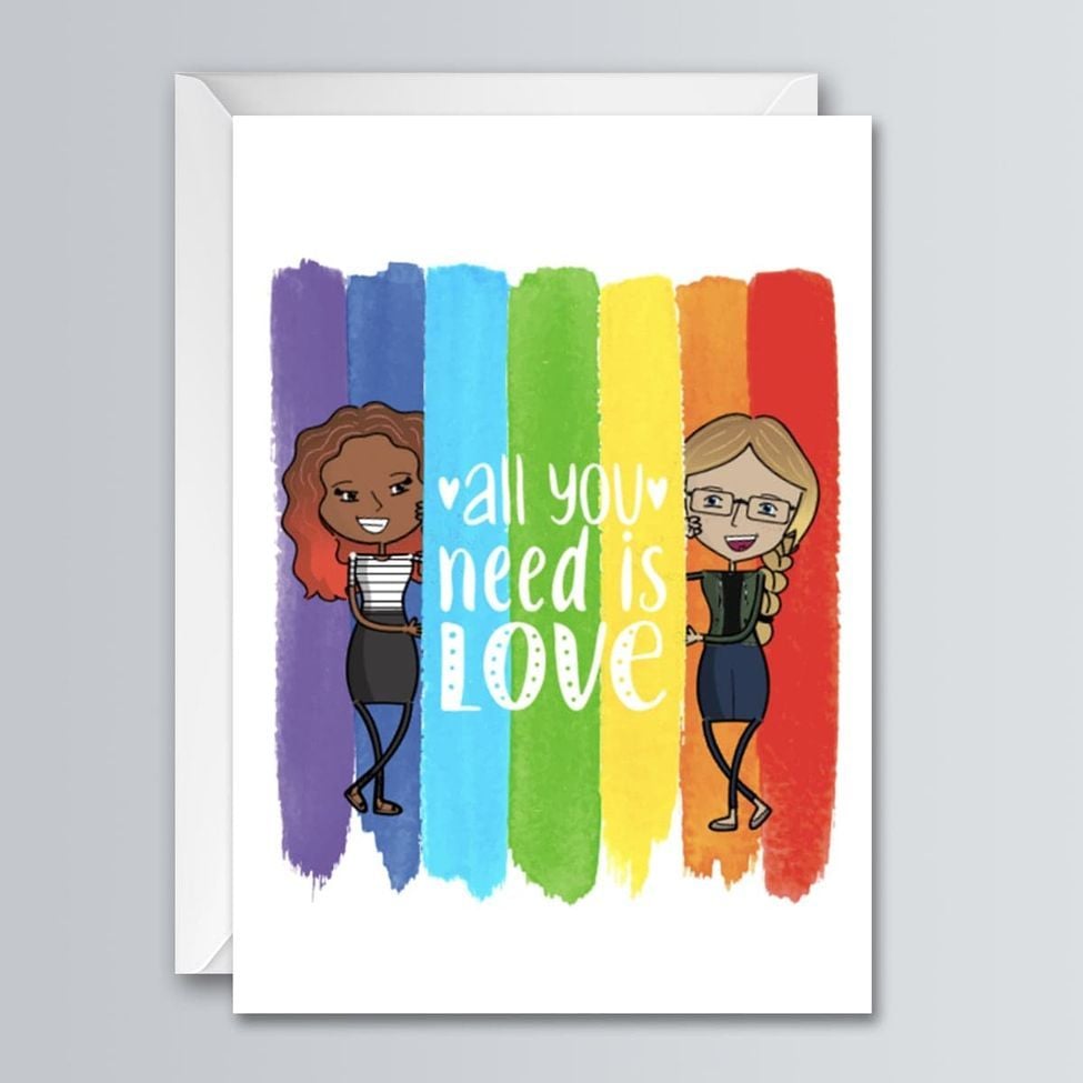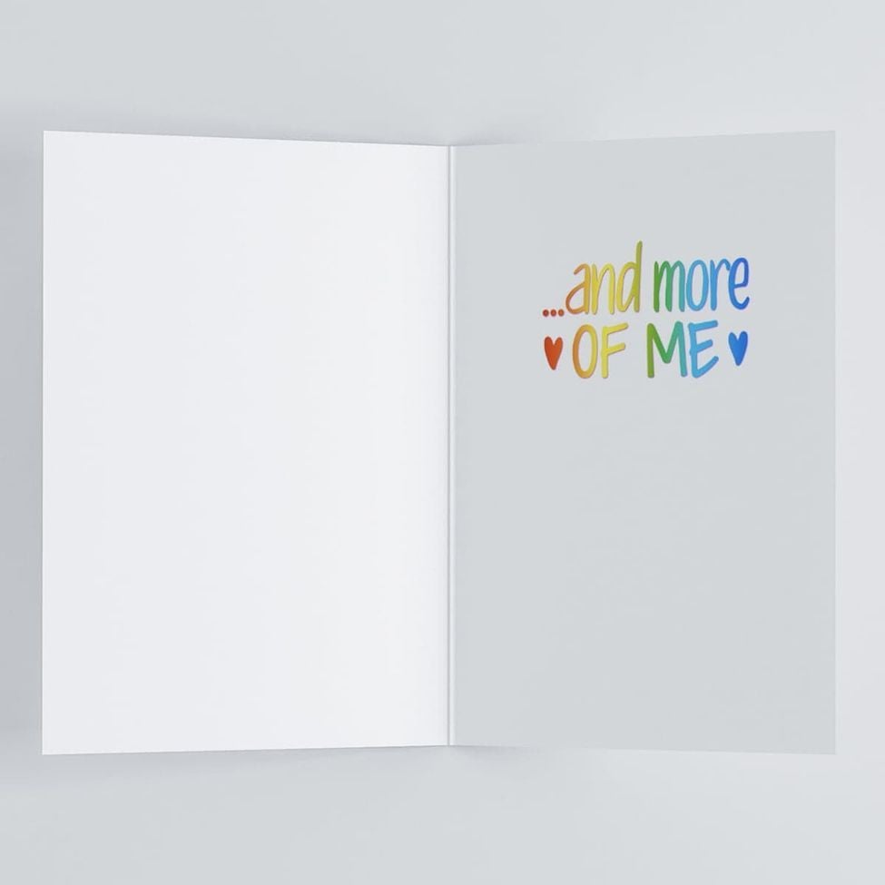 Skip the generic greeting cards and create your very own customizable card! This card features adorable Lovemojis of you and your partner standing among the colors of the rainbow!