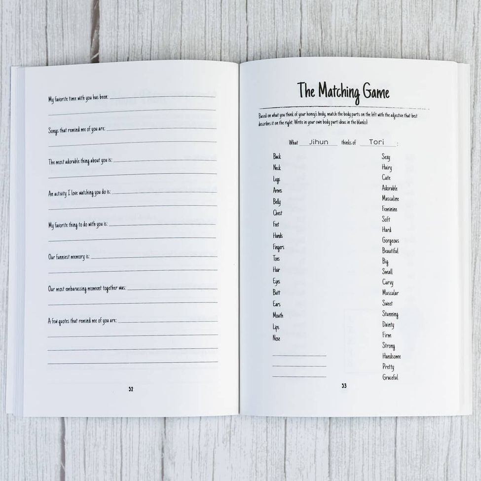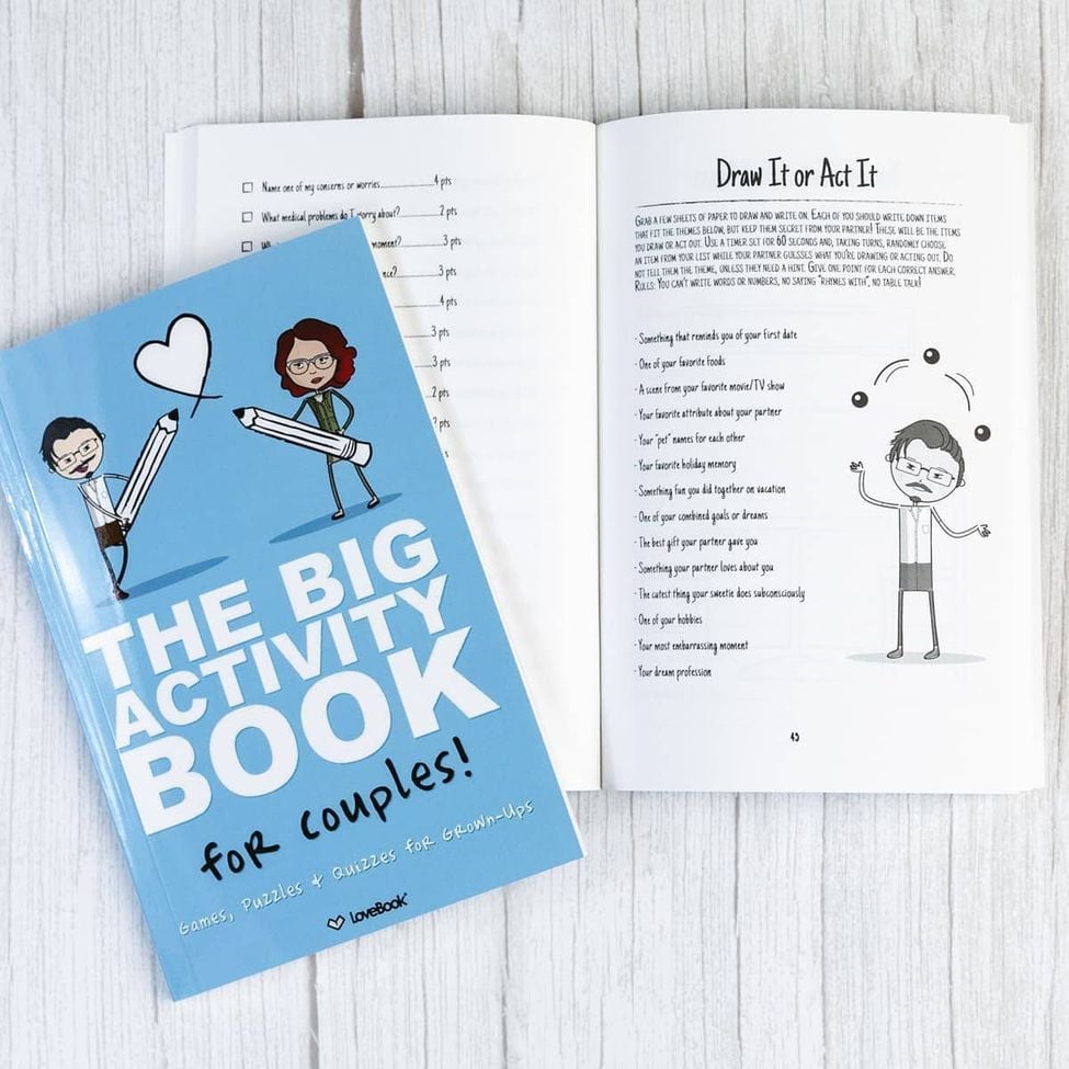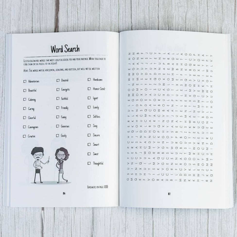 The LoveBook Activity Book is a fun book filled with puzzles, games, and quizzes to play with your significant other.