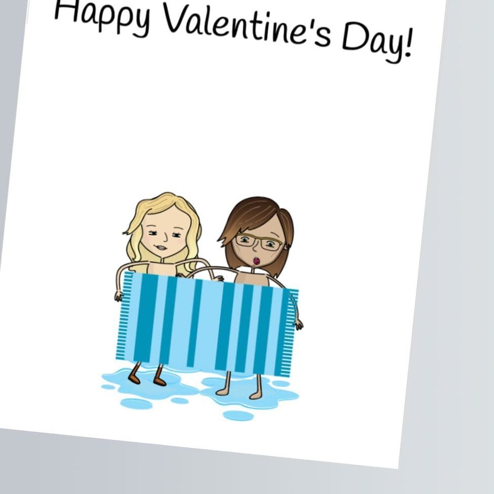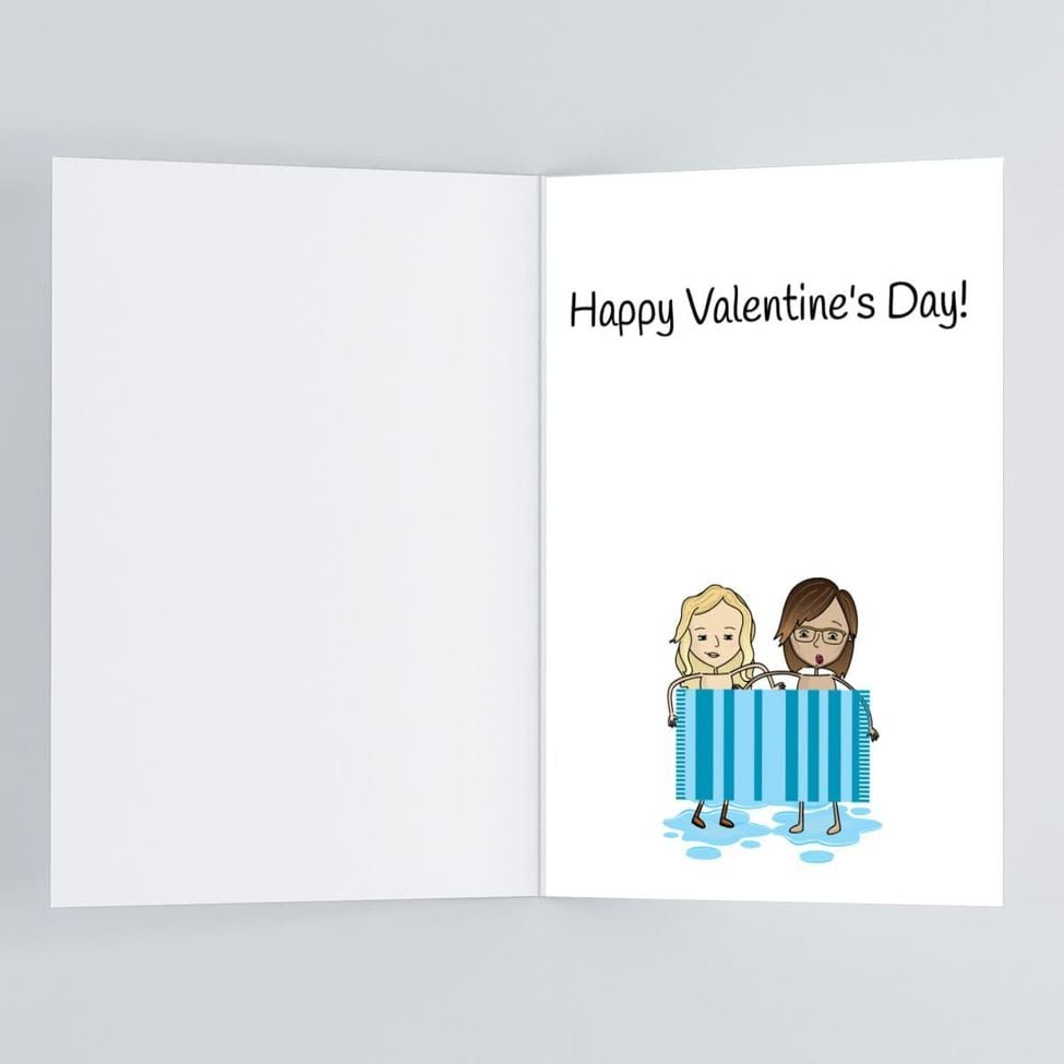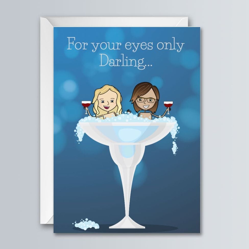 Make this Valentine's Day a sexy, bubbly one with this personalized Valentine greeting card. This card features a Lovemoji of you and your spouse.