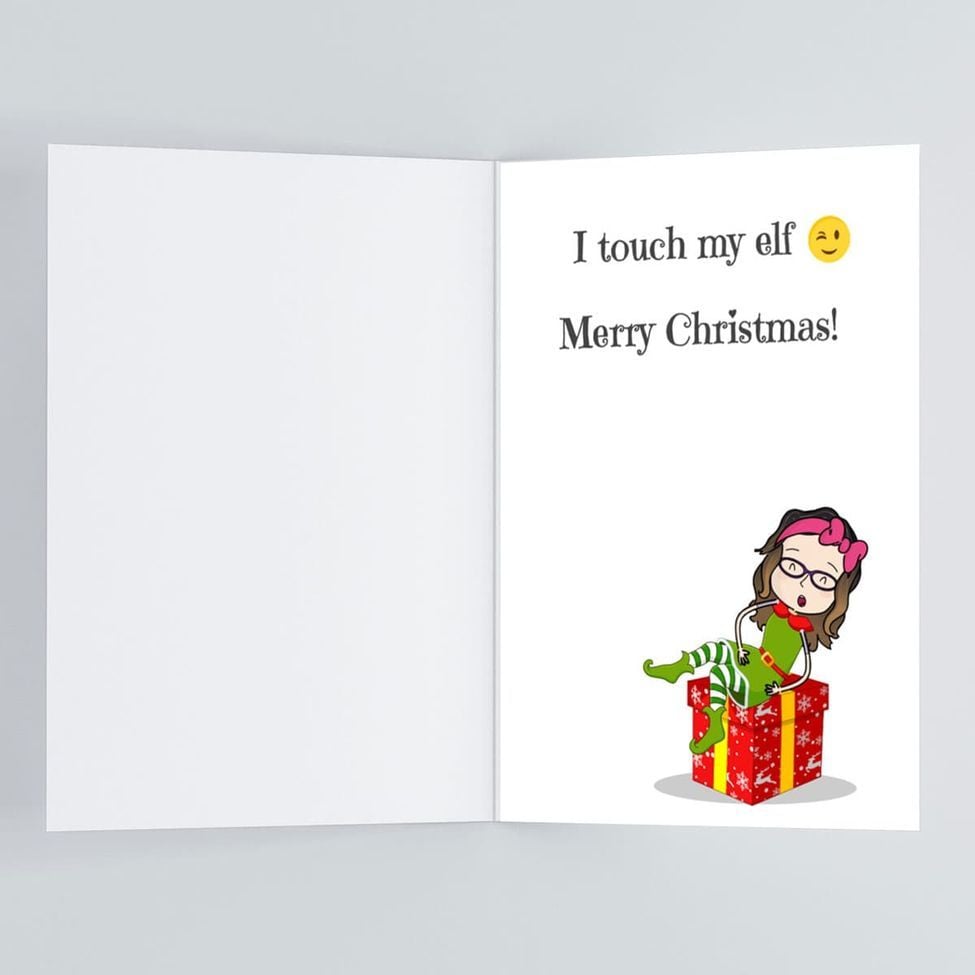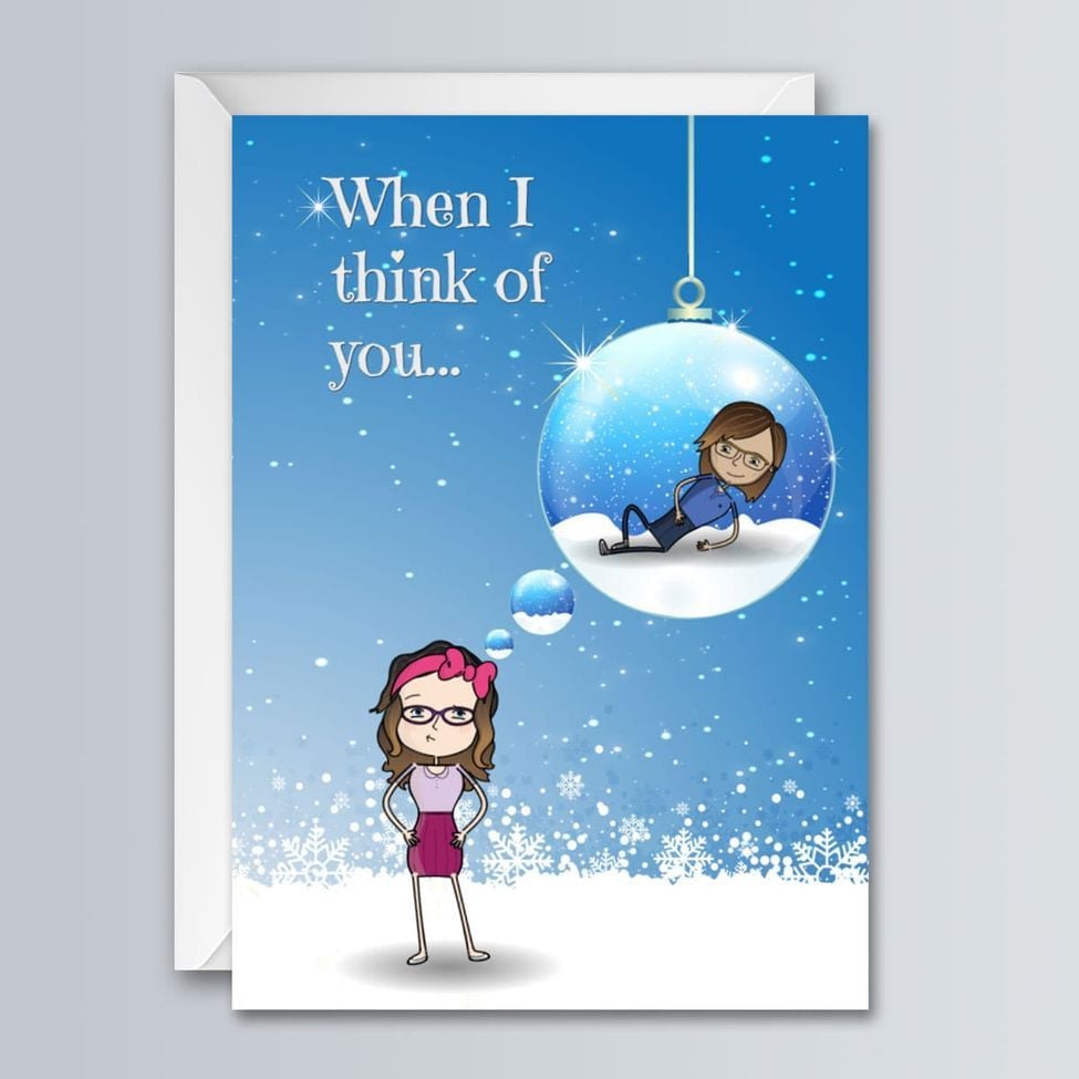Make this holiday season a sexy one with this personalized Christmas greeting card. This card features a Lovemoji of you and your spouse.