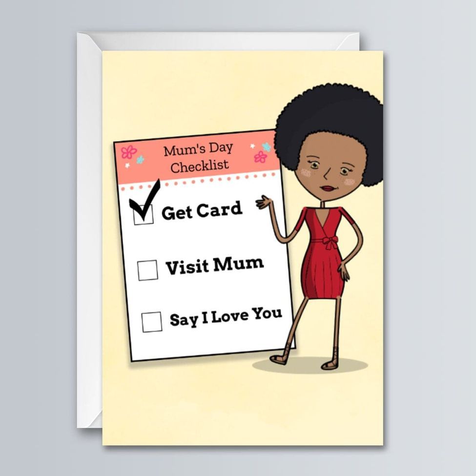 Skip the generic greeting cards and create your very own customizable card! This Call Your Mum card features your Mum's adorable Lovemoji standing with your checklist!
