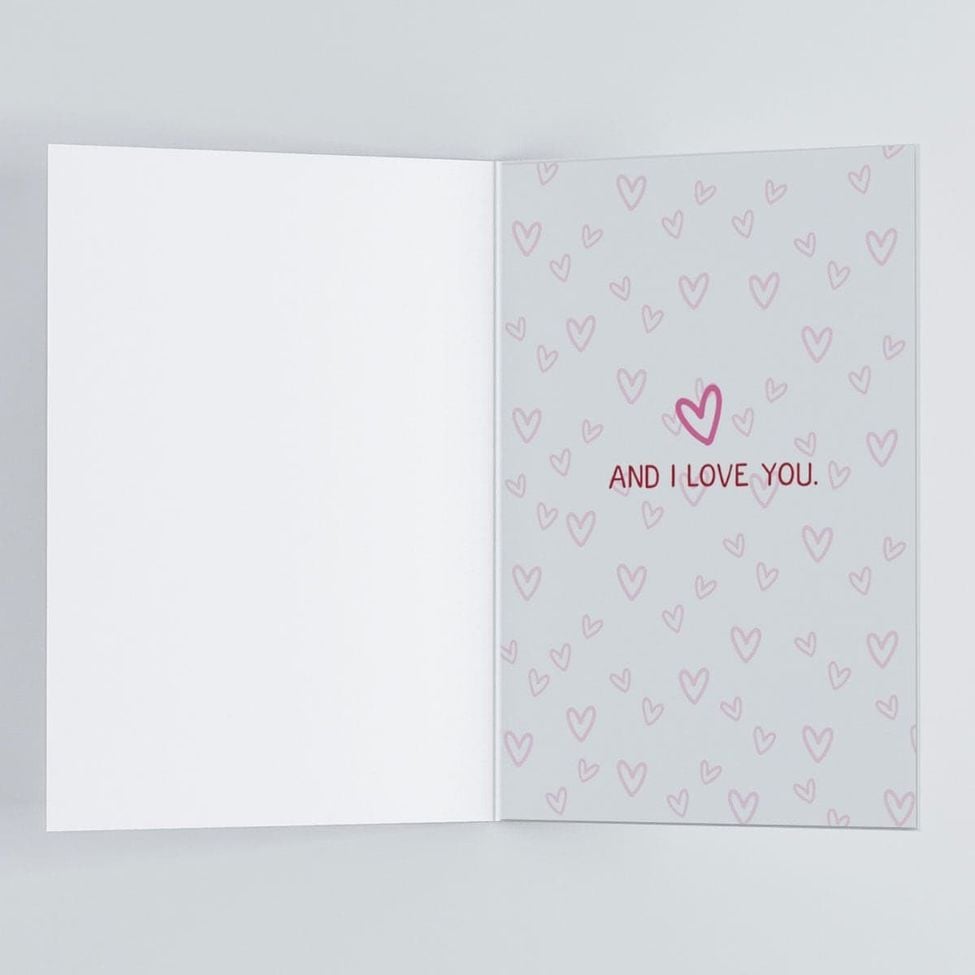 Skip the generic greeting cards and create your very own customizable card! This card features a Lovemoji of your mom standing in front of a heart.
