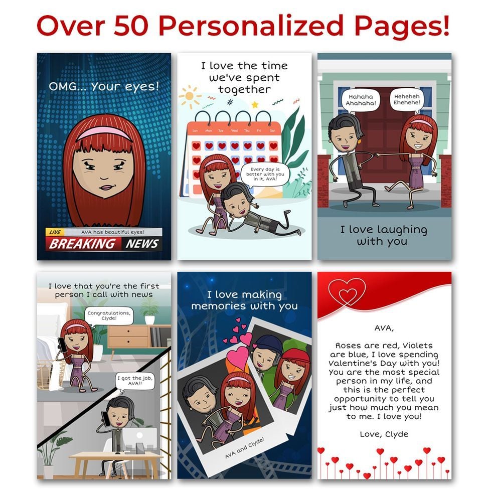The LoveBook Builder will generate a full storybook featuring you and your Valentine in 50 pages of fun, silly, loving moments. Printed with a beautiful casebound hard cover. LoveBooks are shipped all over the world. Also available in digital download format!
