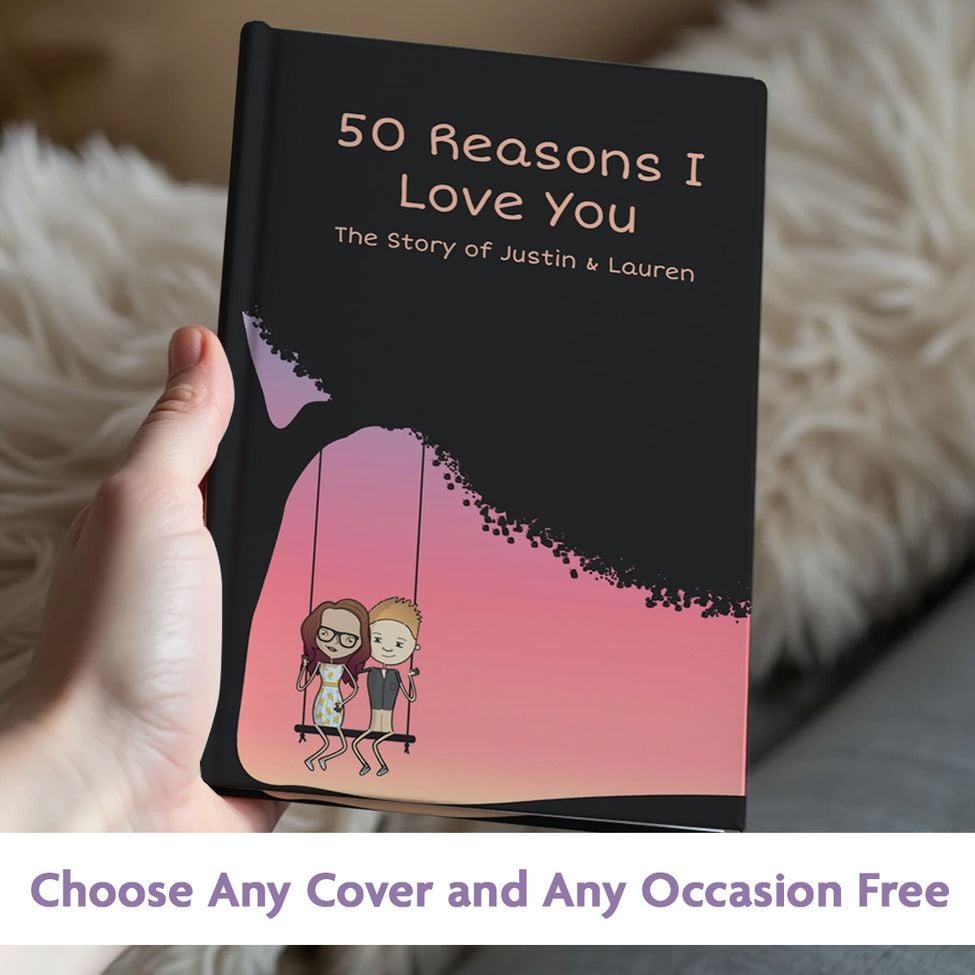 Celebrate your love with the "50 Reasons I Love You" Personalized LoveBook, a heartfelt and unique gift for Valentine's Day, anniversaries, birthdays, or any special occasion. This fully customizable book lets you showcase 50 reasons why your partner means the world to you, from sweet memories to funny moments that only the two of you share.