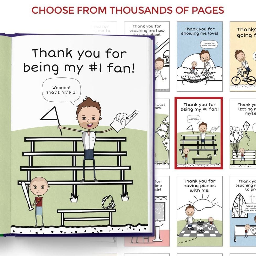 Wish your dad "Happy Father's Day" with LoveBook: the most unique personalized gift you could ever give. Say why you love them in your own book. Use our LoveBook Creator to build your book of reasons why you love someone! Create your characters and select your pages. It's a sentimental, thoughtful gift for friends and family alike.