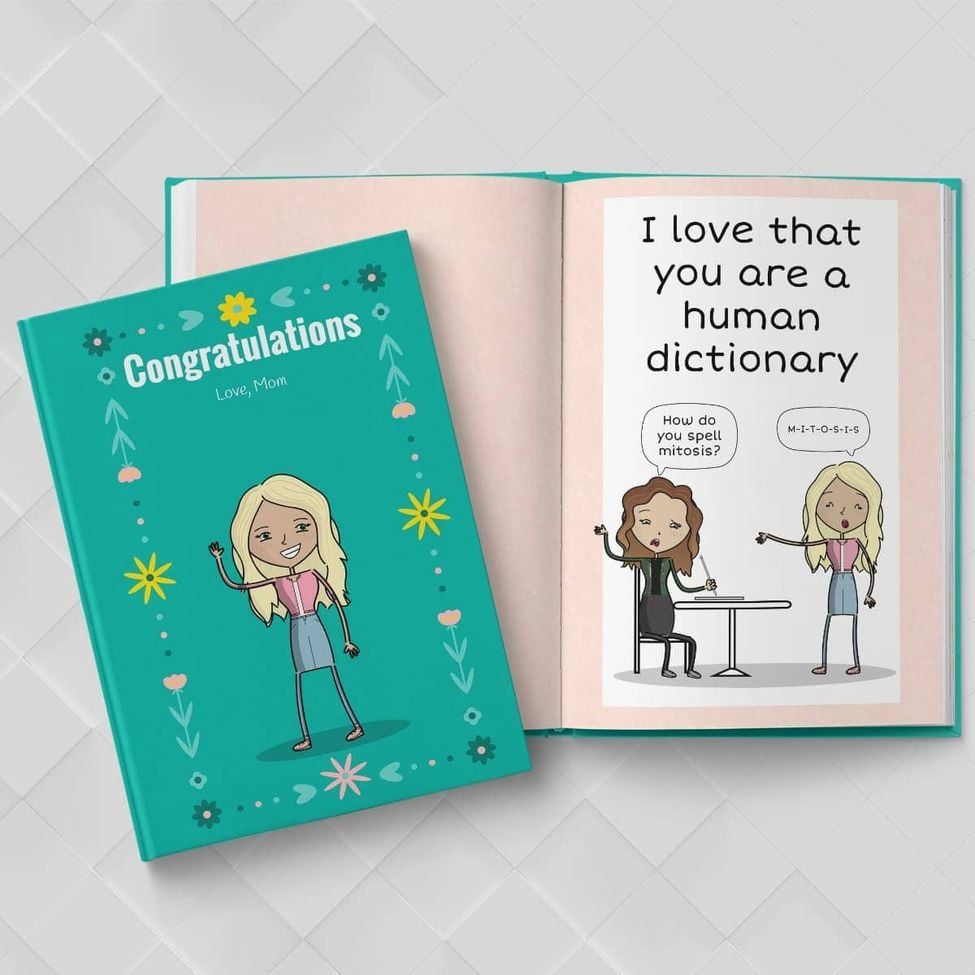 Celebrate a recent graduation with LoveBook: the most unique personalized gift you could ever give. Say why you love them in your own book. Use our LoveBook Creator to build your book of reasons why you love someone! Create your characters and select your pages. It's a sentimental, thoughtful gift for friends and family alike.