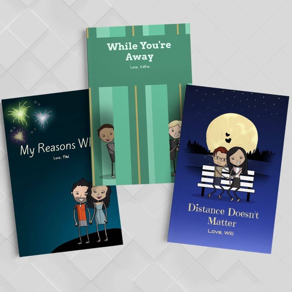 Love knows no distance. Create your own personalized long distance relationship love story that lists all the reasons why you love them. A fully customized love story in 3 easy steps! Create your characters, answer a few quick questions, edit the pages to fit your relationship. Add up to 100 full color, illustrated pages for one flat price. Printed and shipped anywhere in the world.