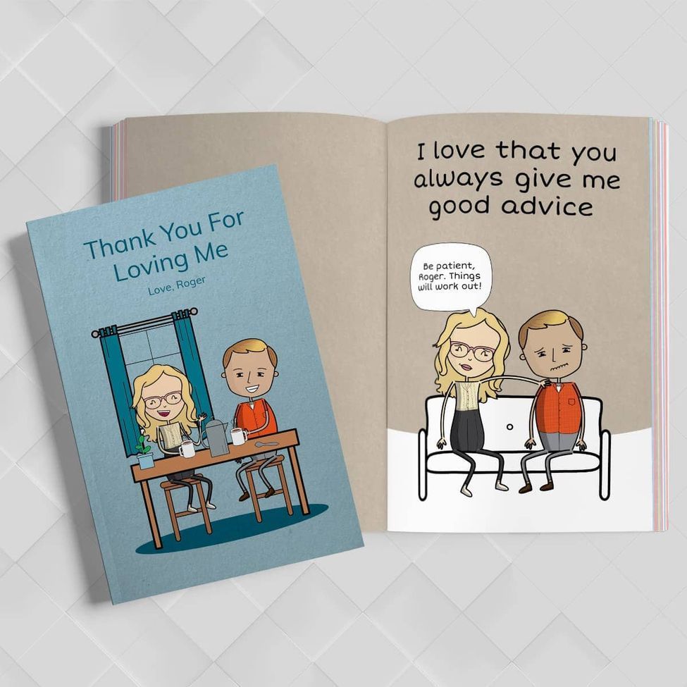 Create the perfect "Thank You" gift with LoveBook: the most unique personalized gift you could ever give. Say why you love them in your own book. Use our LoveBook Creator to build your book of reasons why you love someone! Create your characters and select your pages. It's a sentimental, thoughtful gift for friends and family alike.